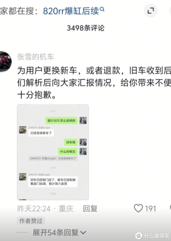 至于那台引发舆论关注的820RR爆缸车辆,官方也给出了明确的处理方案。